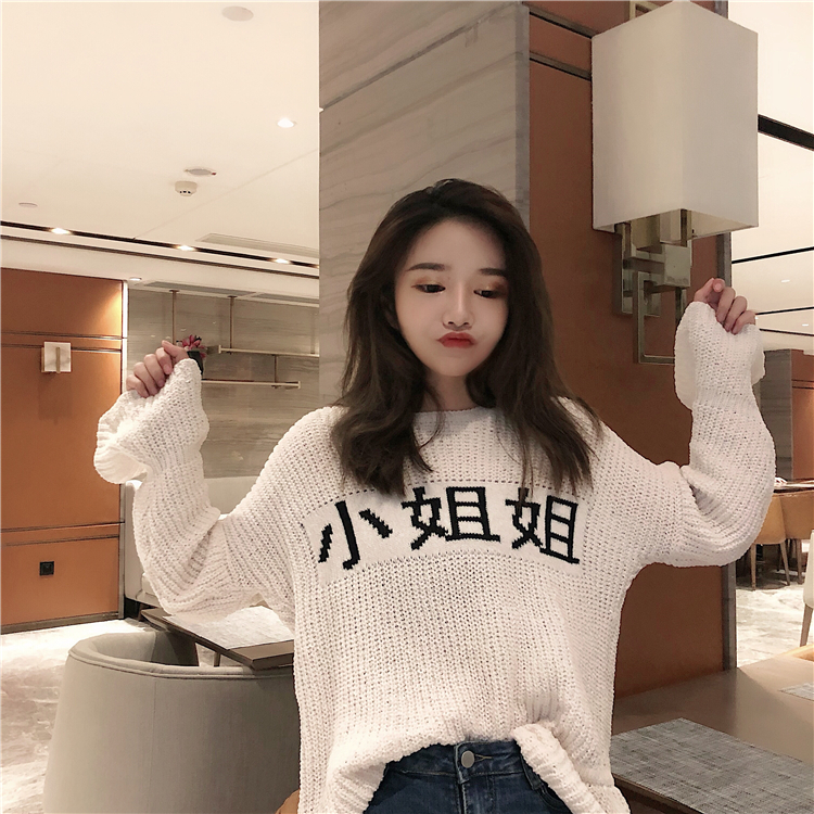 / 韓版時尚休閑套裝秋季網紅慵懶風毛衣+高腰牛仔褲小腳褲兩件套女