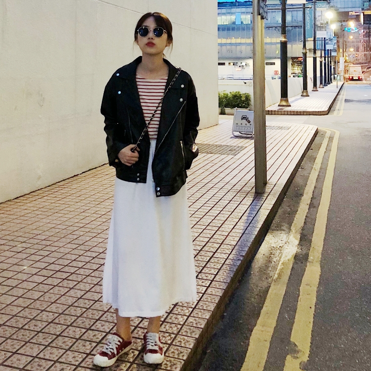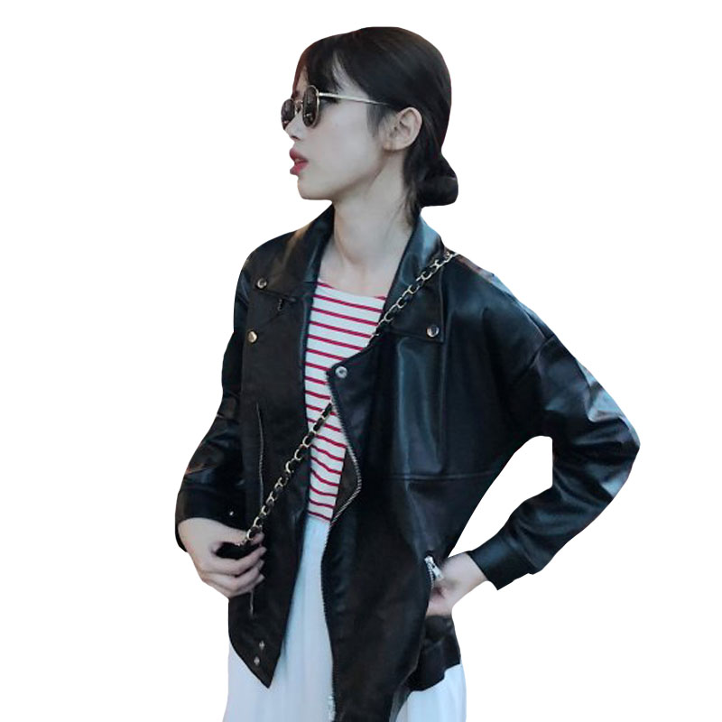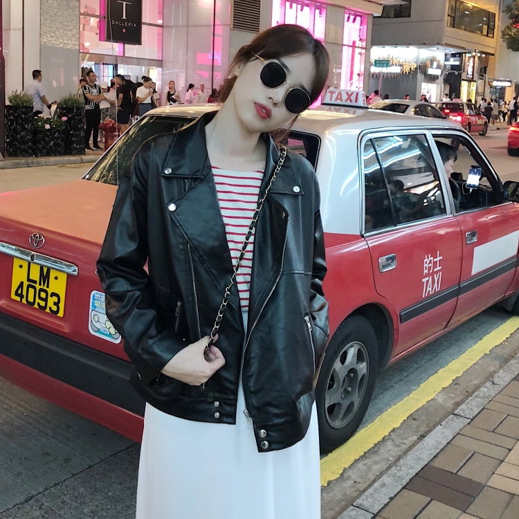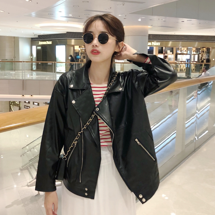 / 秋季女裝韓版寬松bf風機車服外套學生長袖休閑皮夾克開衫上衣皮衣