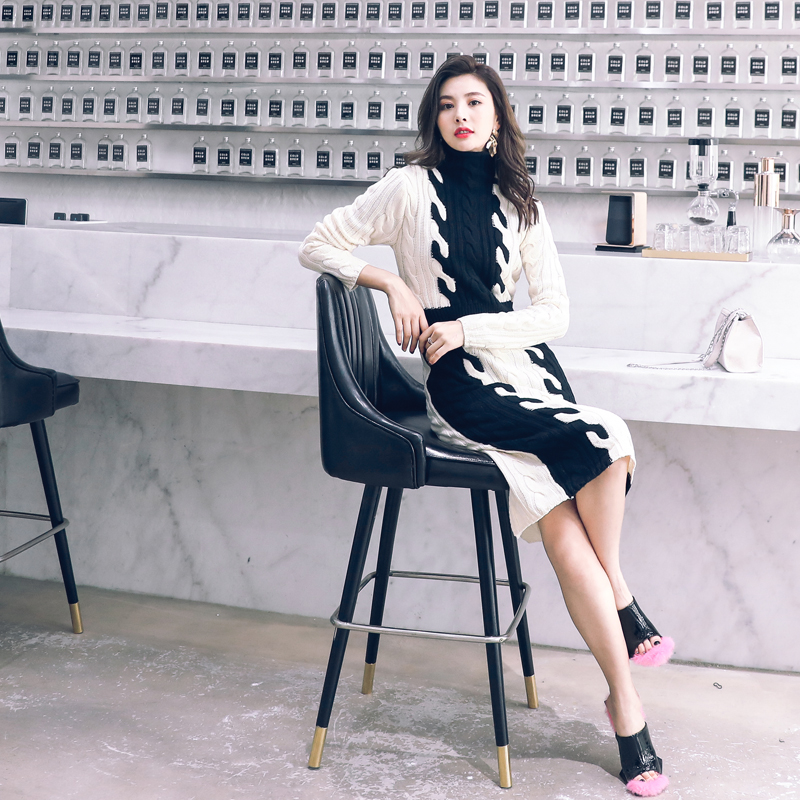 / chic網紅針織連衣裙秋冬季女裝2018新款高領修身顯瘦毛衣打底長裙