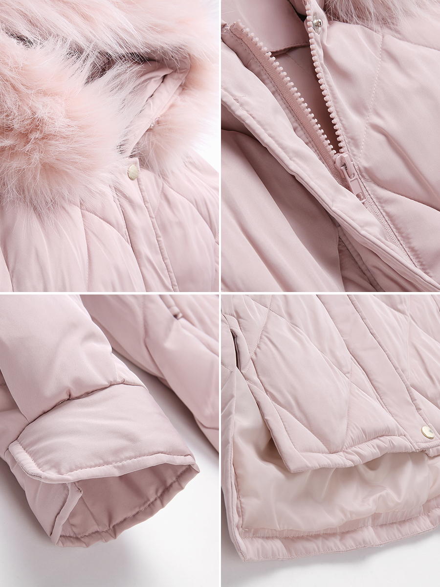 / MG小象冬季粉色棉衣女中長款寬松面包服2018新款大毛領棉服外套潮