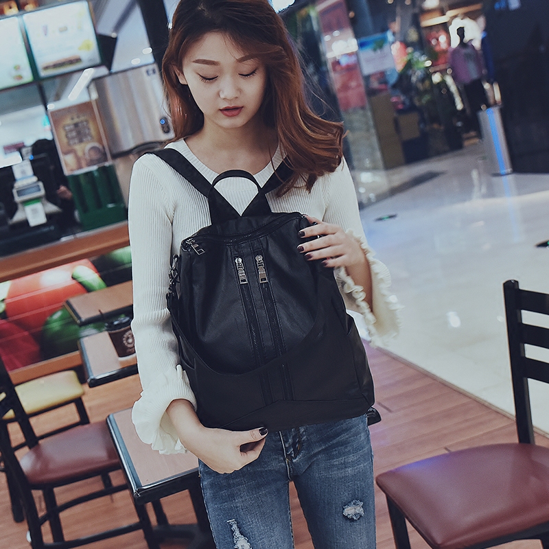 包包新款學院風pu雙肩包女韓版街頭潮流雙肩背包時尚百搭書包