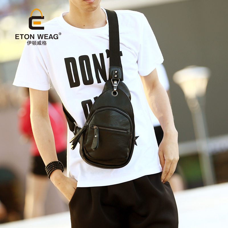 / 原創新款韓版男包潮流小皮質胸包韓版男包休閑復古小背包潮包