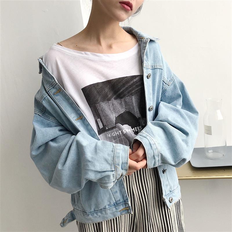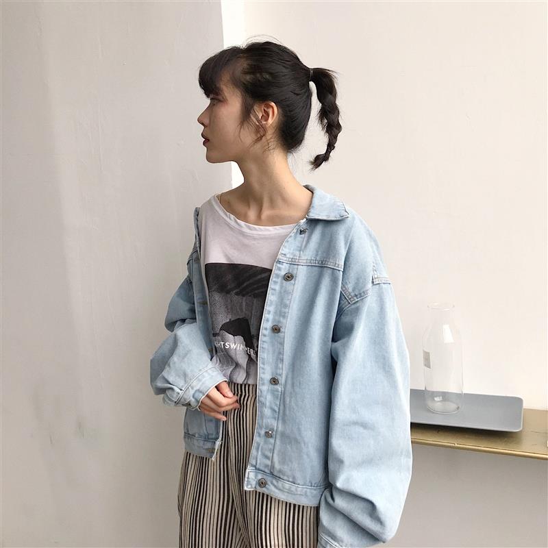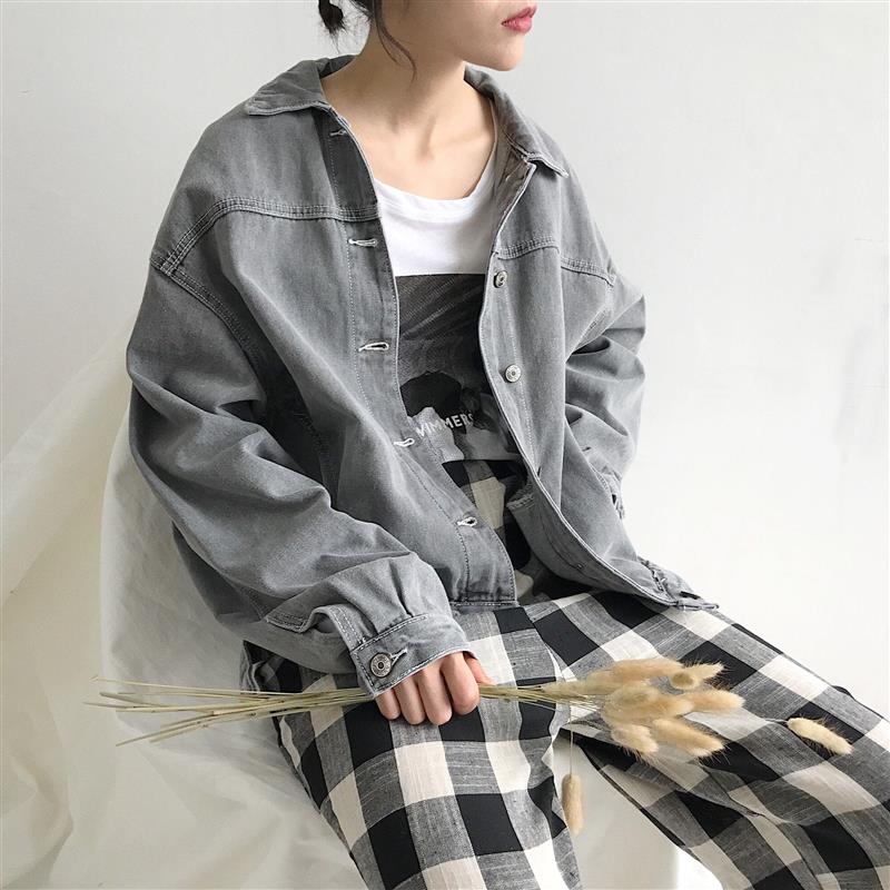 / 秋裝女裝韓版寬松復古短款牛仔外套百搭學生休閑長袖工裝短款夾克