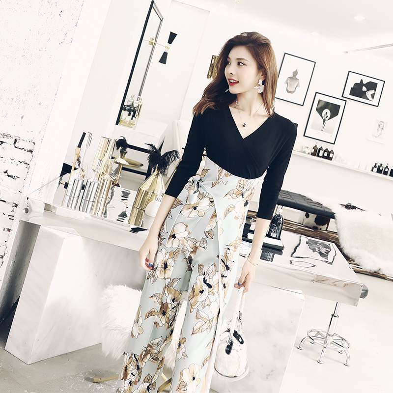 / 女神范2018秋季新款開叉高腰連衣褲顯瘦韓版名媛氣質連體褲子潮