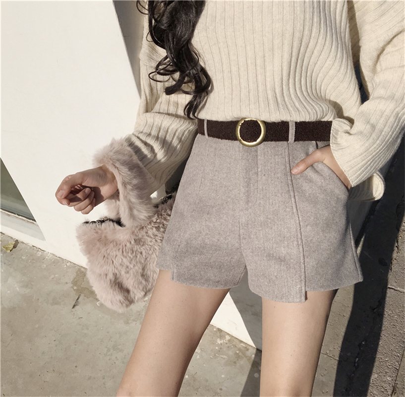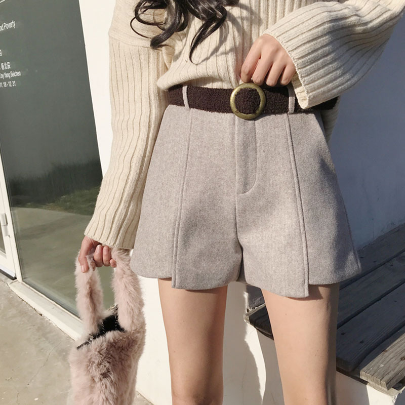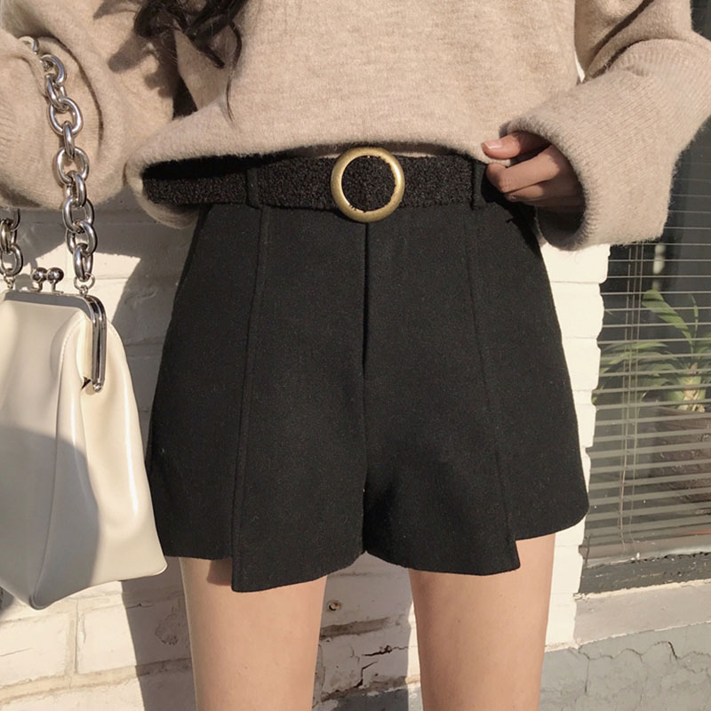 港味復古chic早秋褲子時尚韓版氣質百搭高腰顯瘦毛呢短褲配腰帶潮