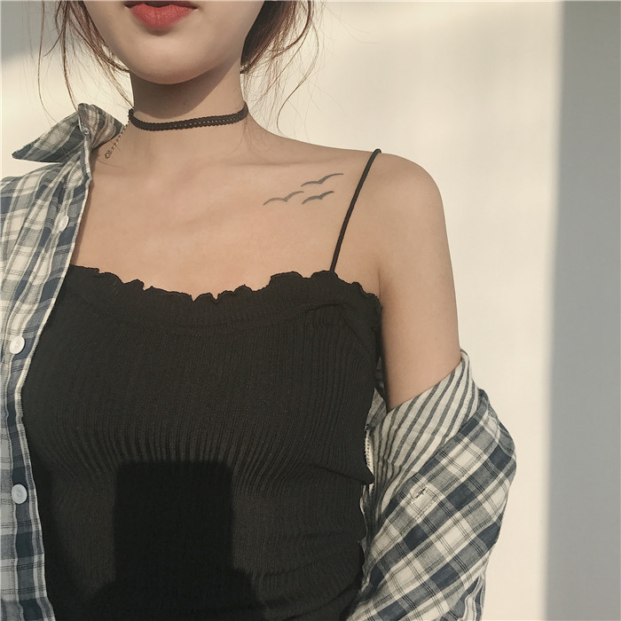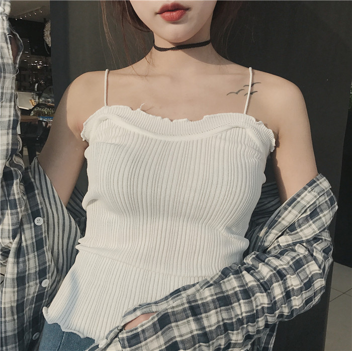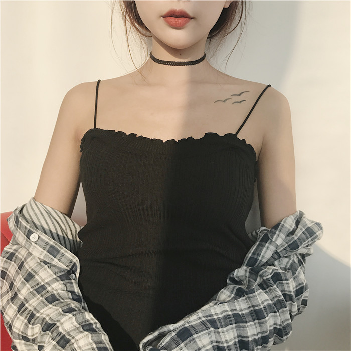 / 韓版時尚小性感花邊針織吊帶小背心修身顯瘦外穿打底衫無袖上衣女