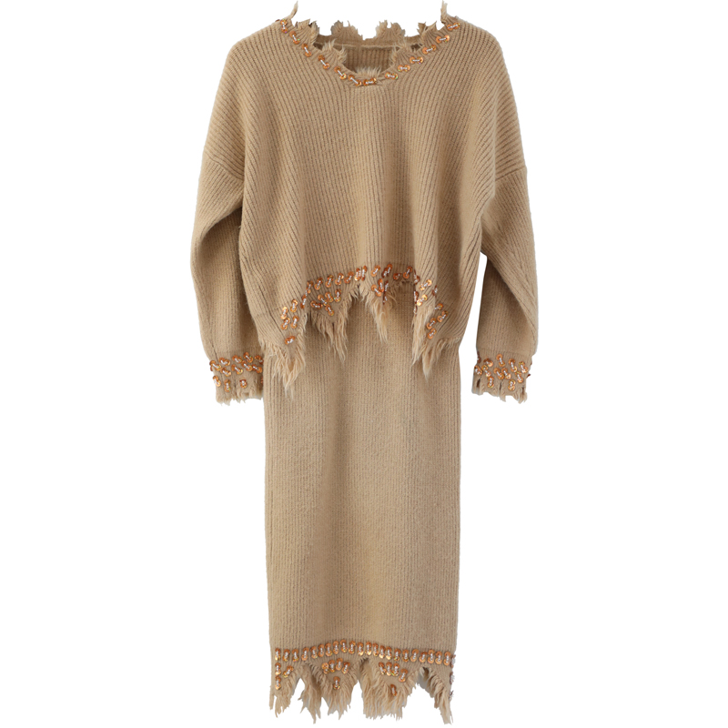 名媛氣質2018新款網紅套裝長袖套頭毛衣包臀半身裙時髦針織兩件套