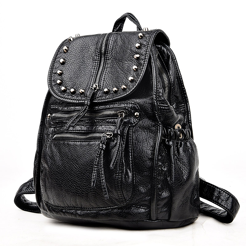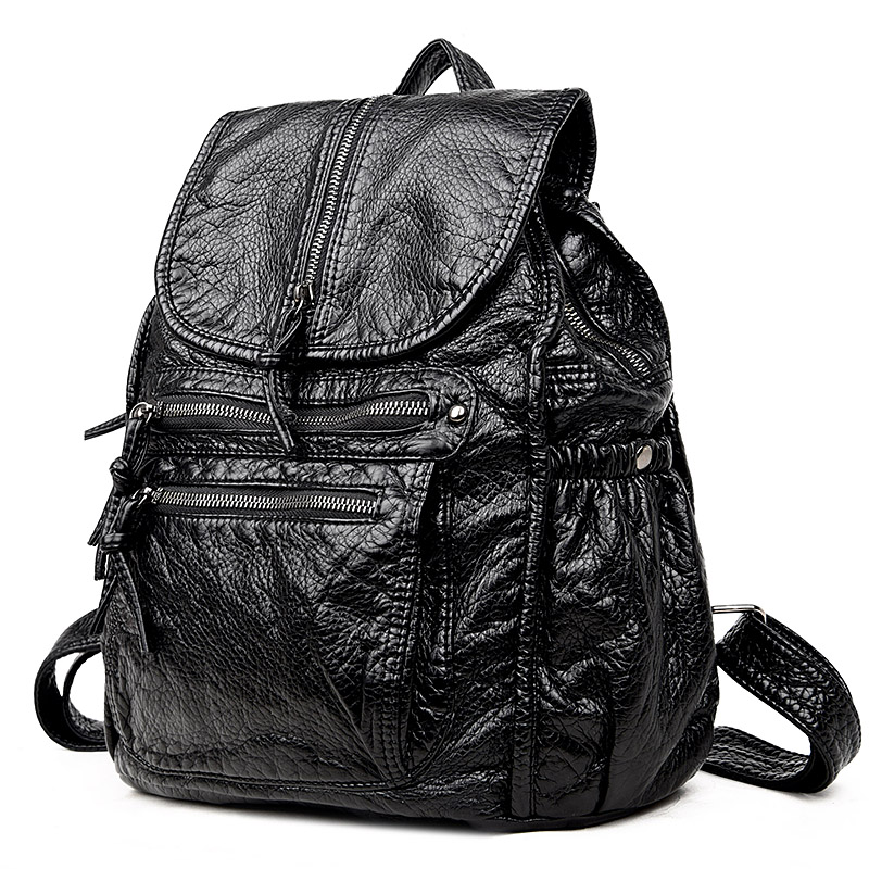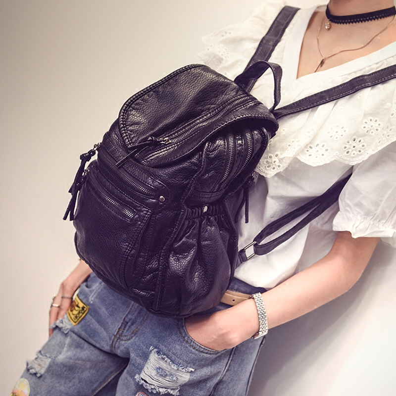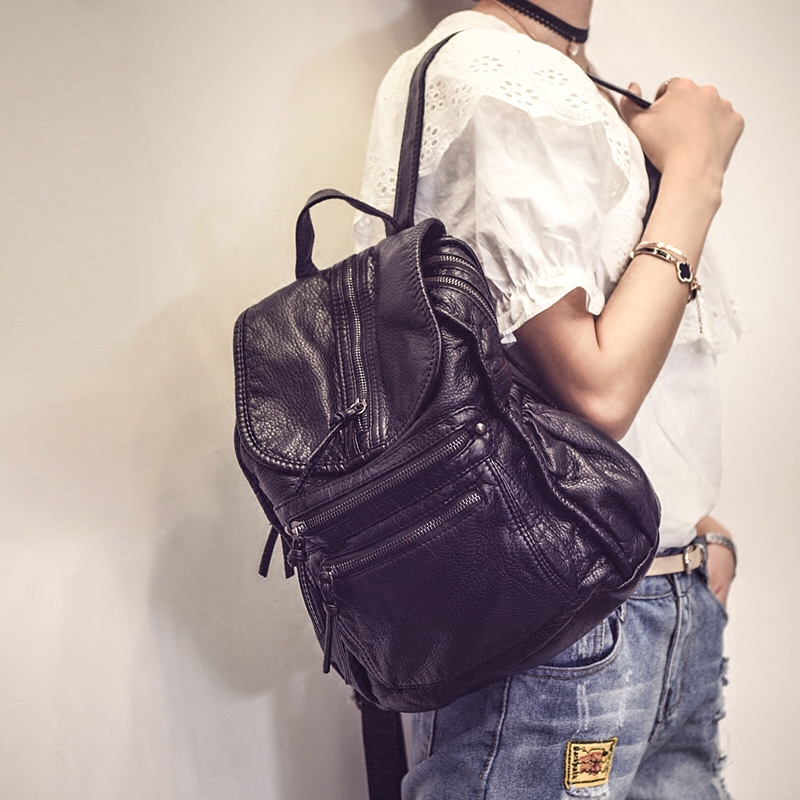 / 韓版時尚百搭新款水洗皮雙肩包女潮流學院風休閑背包旅行包包
