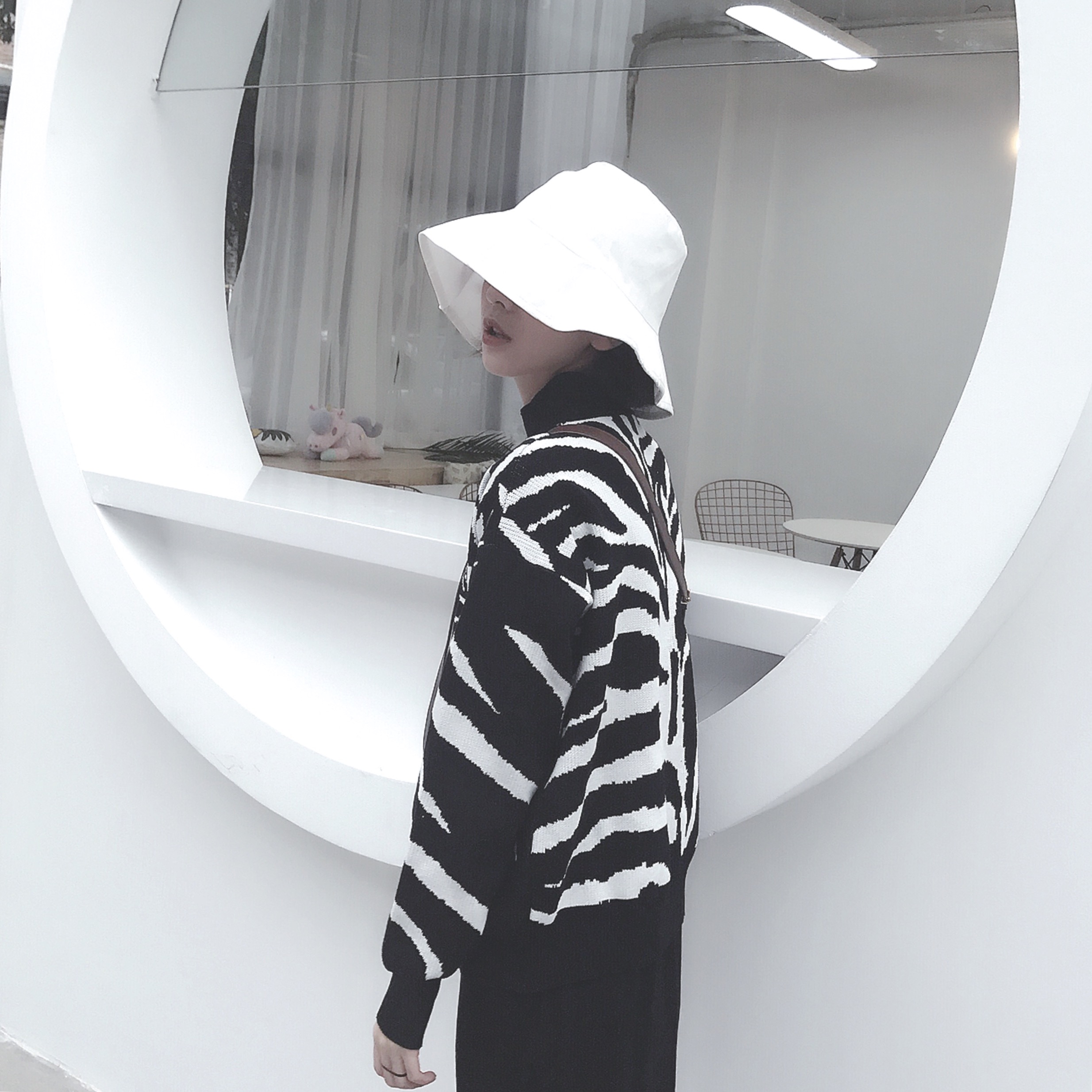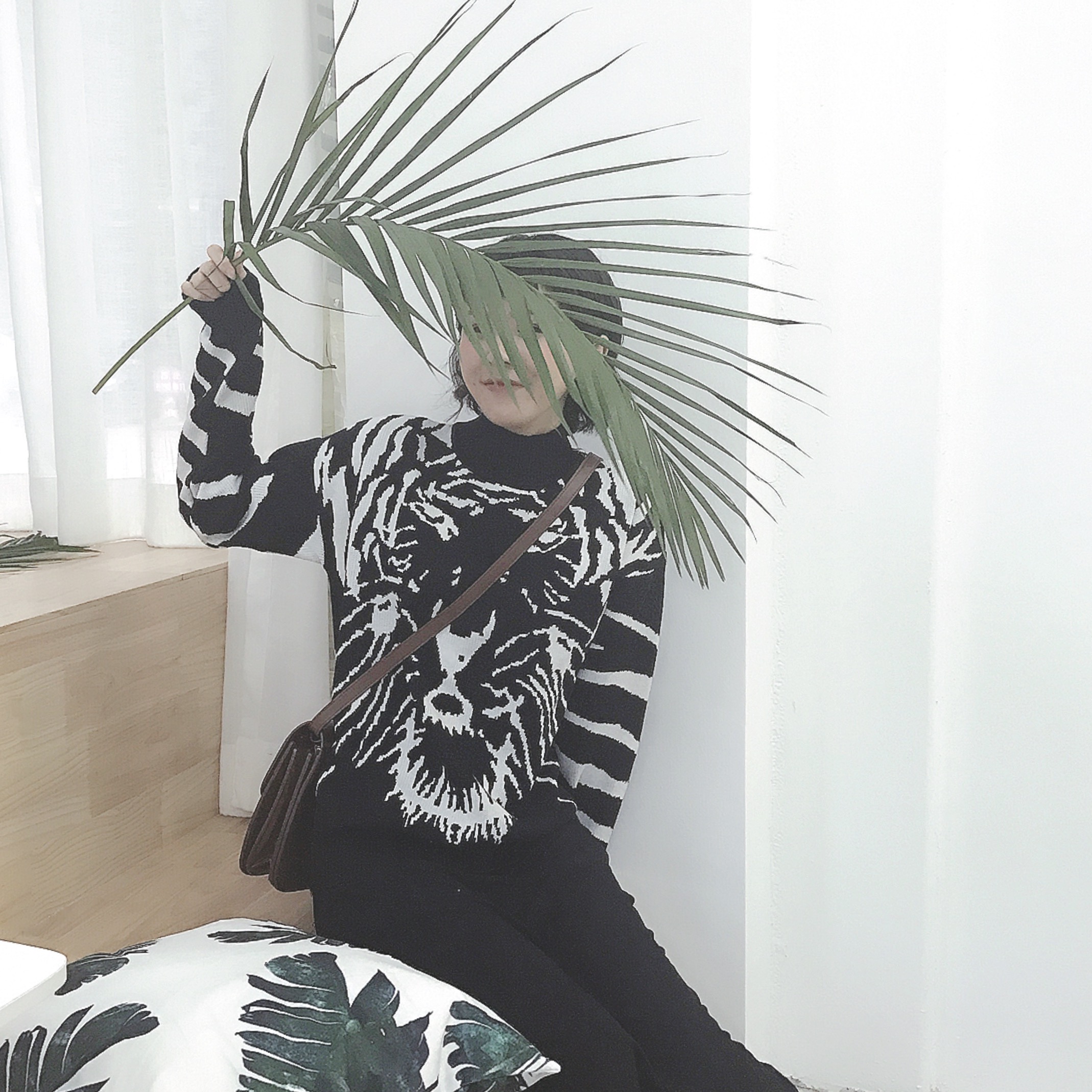 / 復古港風chic早秋針織衫個性虎頭半高領虎紋百搭寬松長袖毛衣女潮