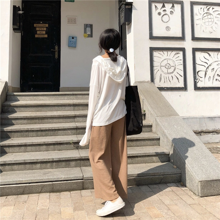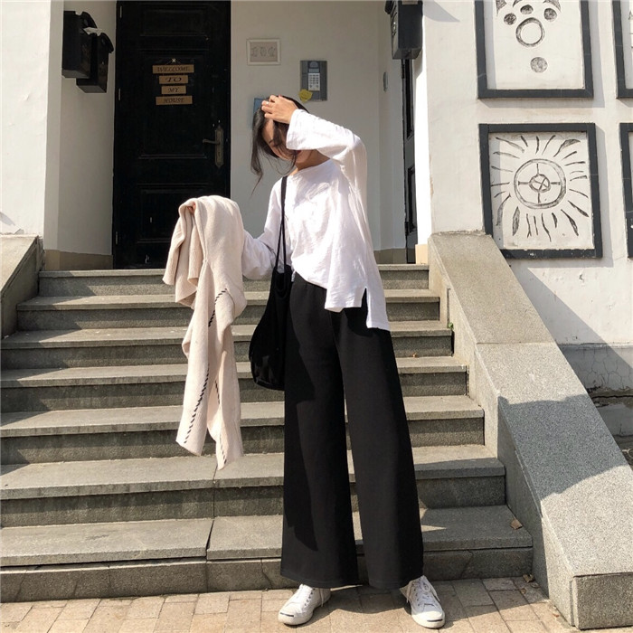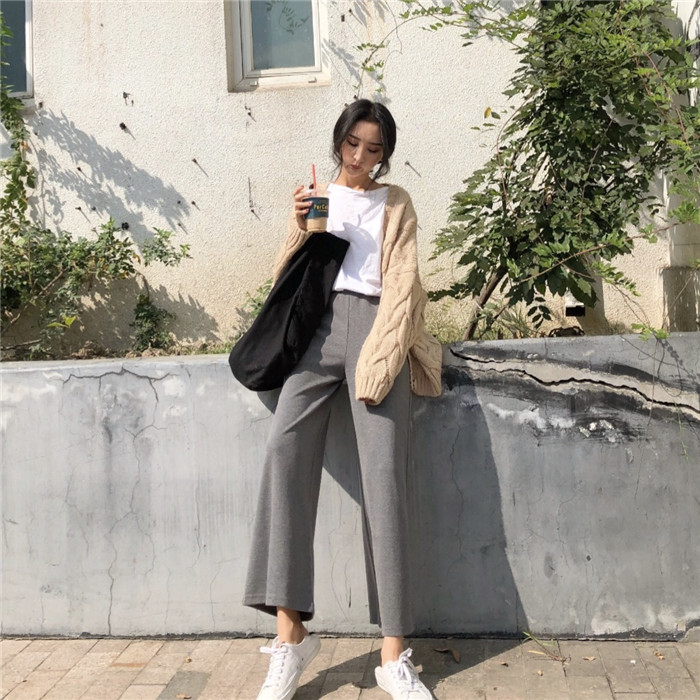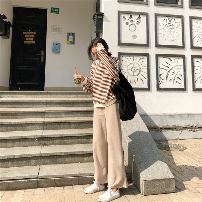 / 褲子女2018新款韓版秋裝時尚百搭松緊腰寬松休閑褲闊腿褲針織長褲