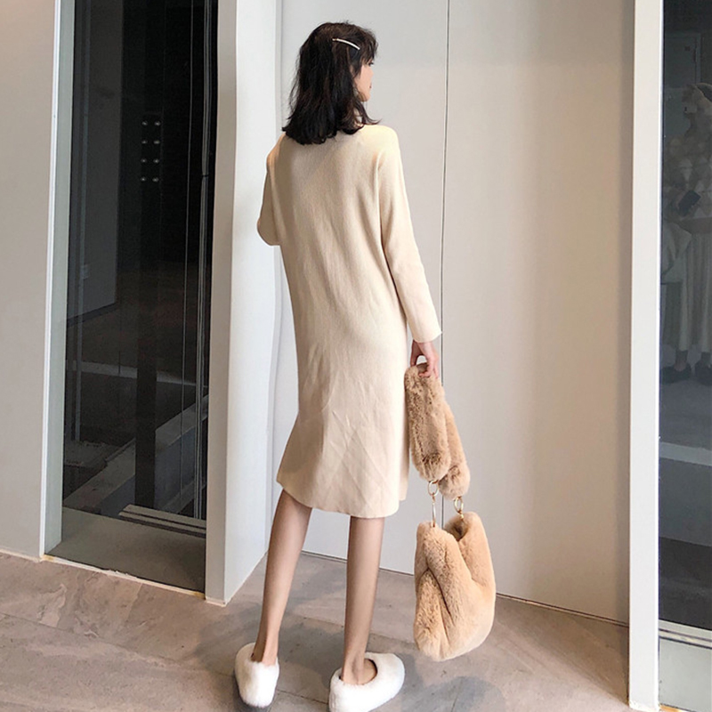 / 秋冬2018新款女裝韓版高領針織打底中長裙開叉egg風長袖連衣裙子