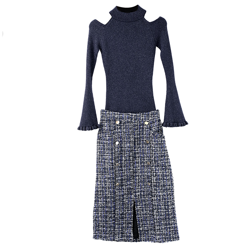 女神套裝秋兩件套網紅針織衫上衣氣質初秋套裝裙高腰半身長裙套裝