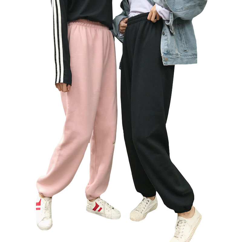 / 秋冬女裝韓版松緊腰哈倫褲寬松加絨加厚休閑褲闊腿褲長褲學生褲子