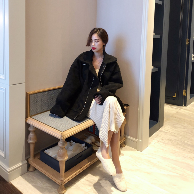 / 韓版chic港風外套女冬裝2018新款寬松加厚仿羊羔毛休閑夾克上衣潮
