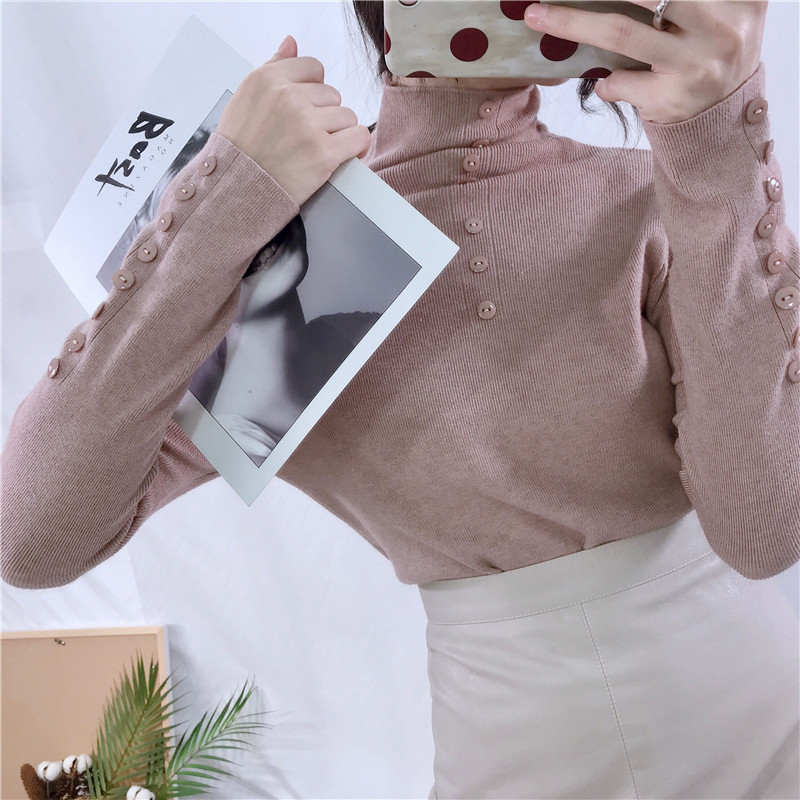 高領純色針織衫女秋冬裝2018新款韓版氣質修身長袖外穿打底薄毛衣