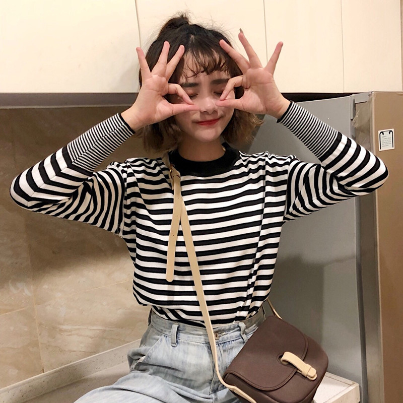 / 原宿風套頭條紋針織衫女秋冬裝2018新款韓版學生長袖外套打底毛衣
