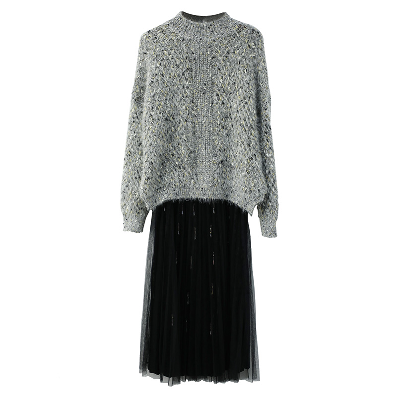 / 女神范2018秋冬季新款韓版網紅俏皮甜美港味毛衣網紗裙子兩件套裝