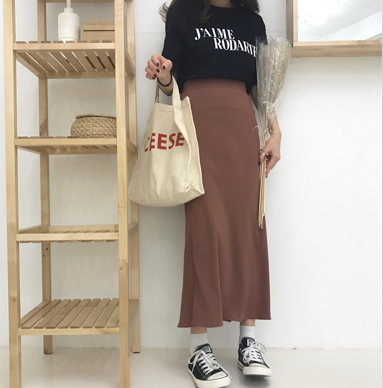 / 夏季新款女裝韓版仙女開叉松緊腰中長裙氣質百搭修身雪紡半身裙女
