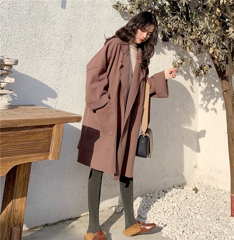 2018新款保暖時尚開衫大衣女中長款秋冬季韓版學生毛呢呢子外套潮