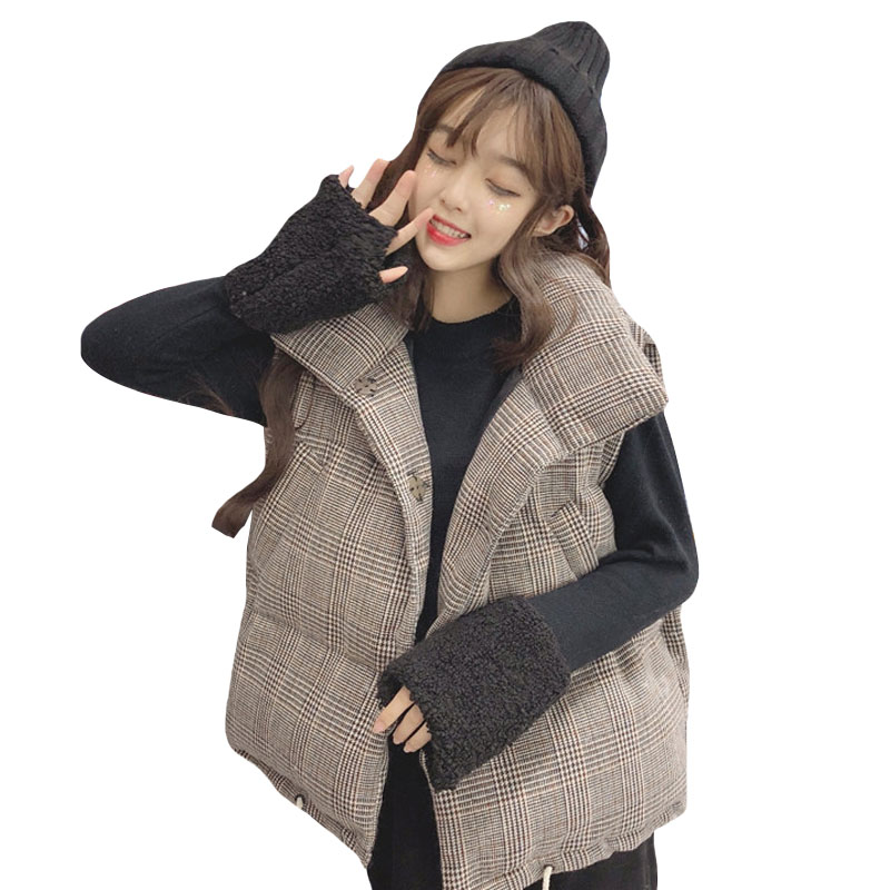 2018新款秋冬女裝韓版學院風復古寬松格子棉衣面包服馬甲背心外套