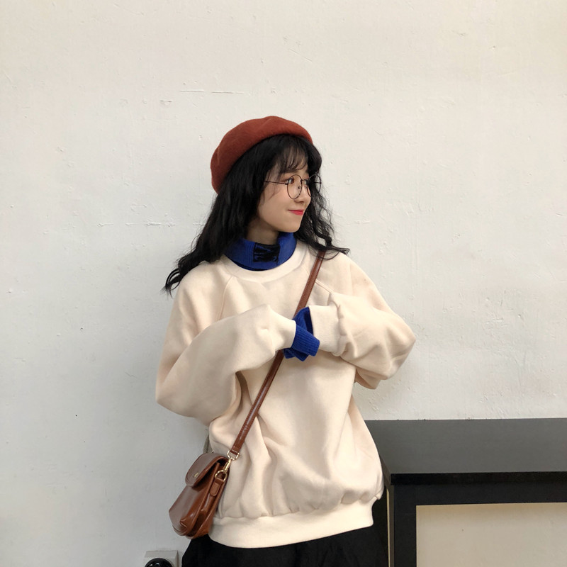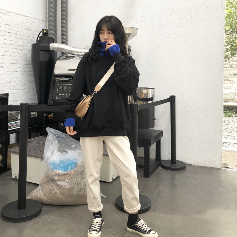 秋冬女裝2018新款韓版中長款原宿風加絨寬松拼接高領超火衛衣外套