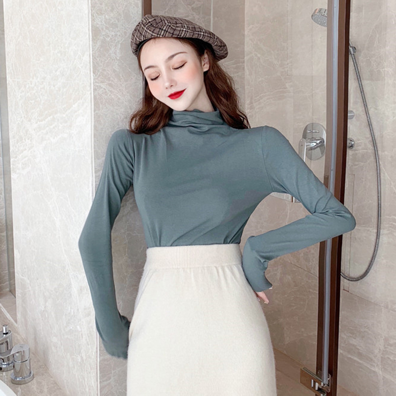 / 內搭半高領打底衫女修身顯瘦長袖T恤上衣學生秋裝女新款體恤衣服