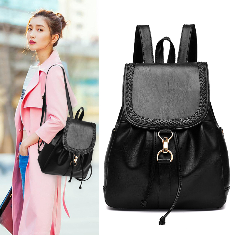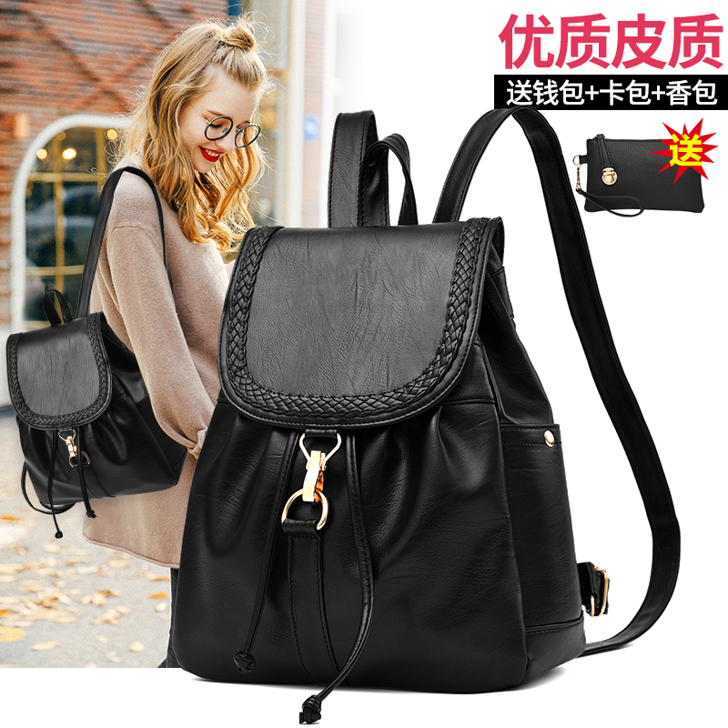 / 雙肩包女韓版新款潮百搭時尚歐美個性休閑背包女軟皮包包女夏