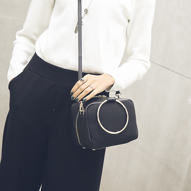 秋冬新款韓版磨砂撞色單肩女包迷你小方包圓環手提包斜挎小包
