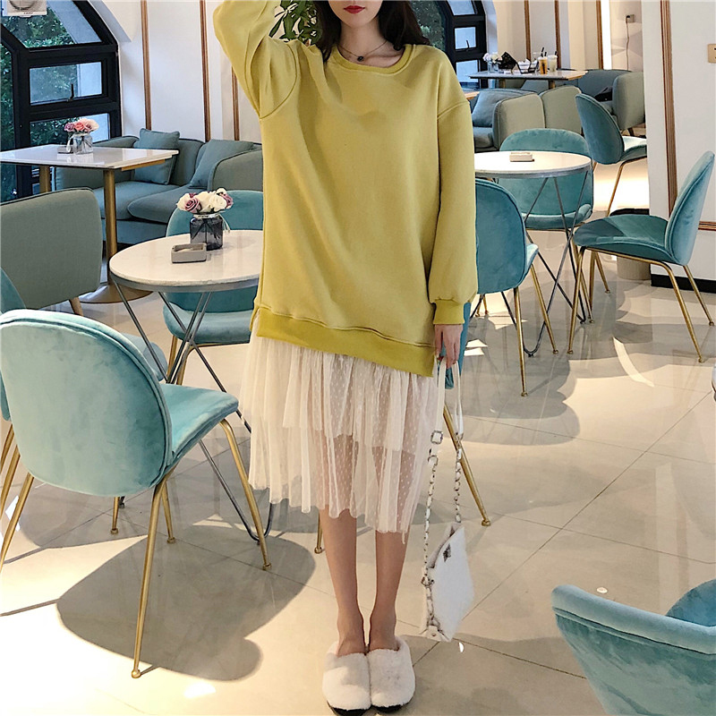 / 時尚拼接假兩件寬松連衣裙子女秋冬裝新款學生法式長袖egg桔梗裙