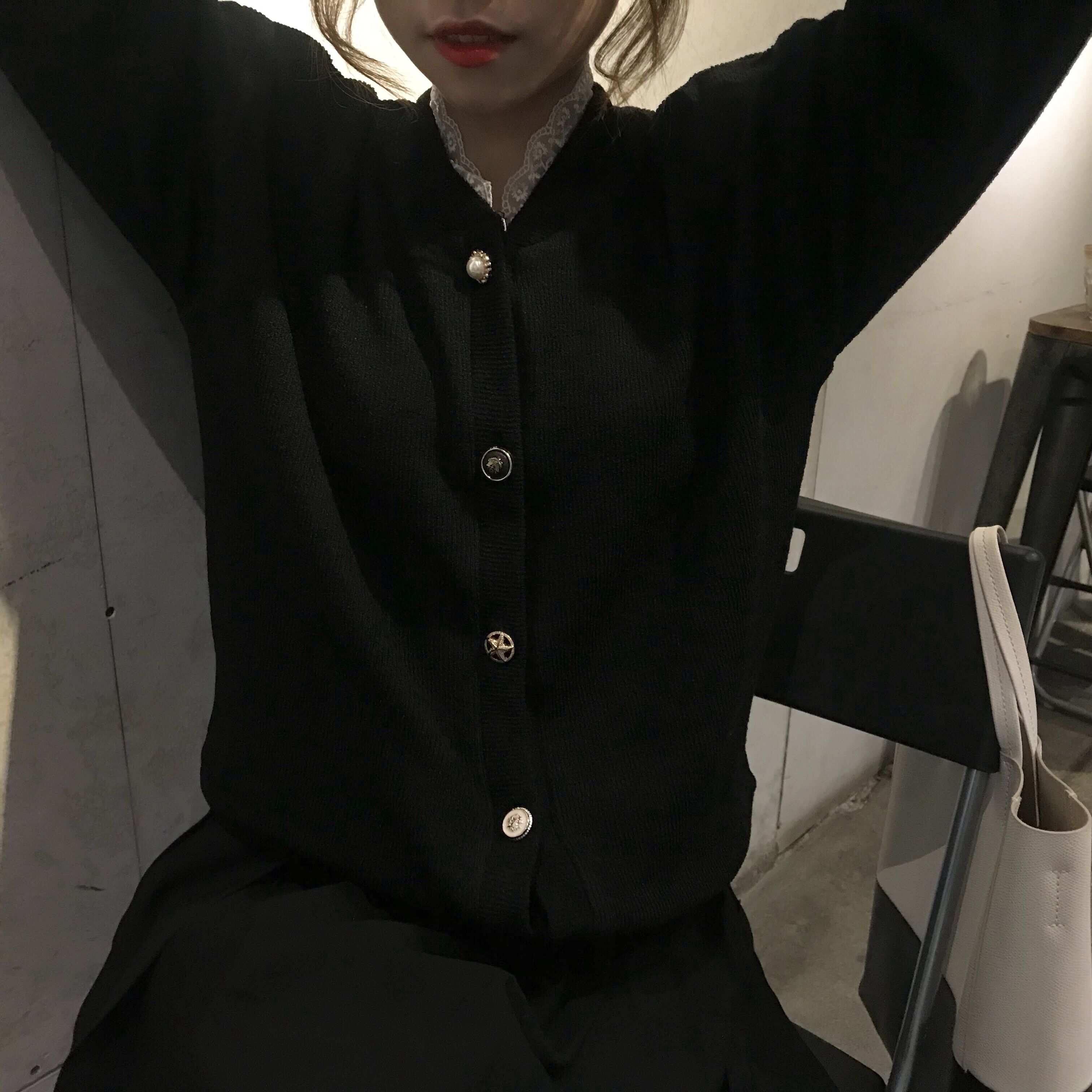 / 冬季新款韓版百搭時尚chic宮廷風蕾絲拼接復古chic氣質短上衣開衫