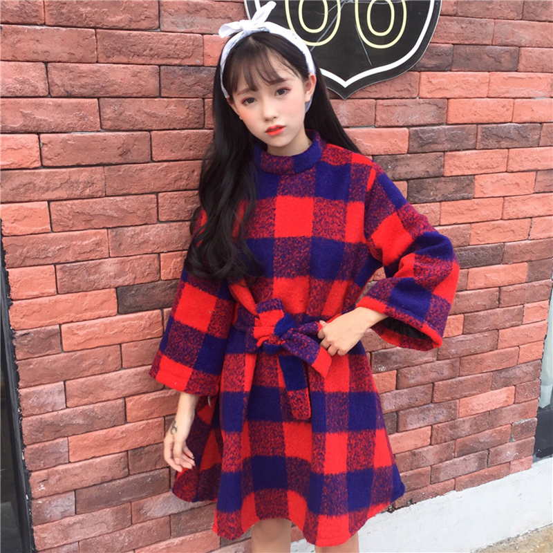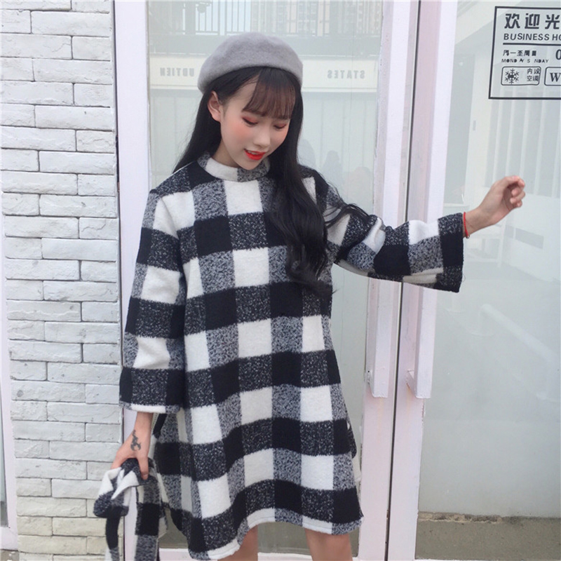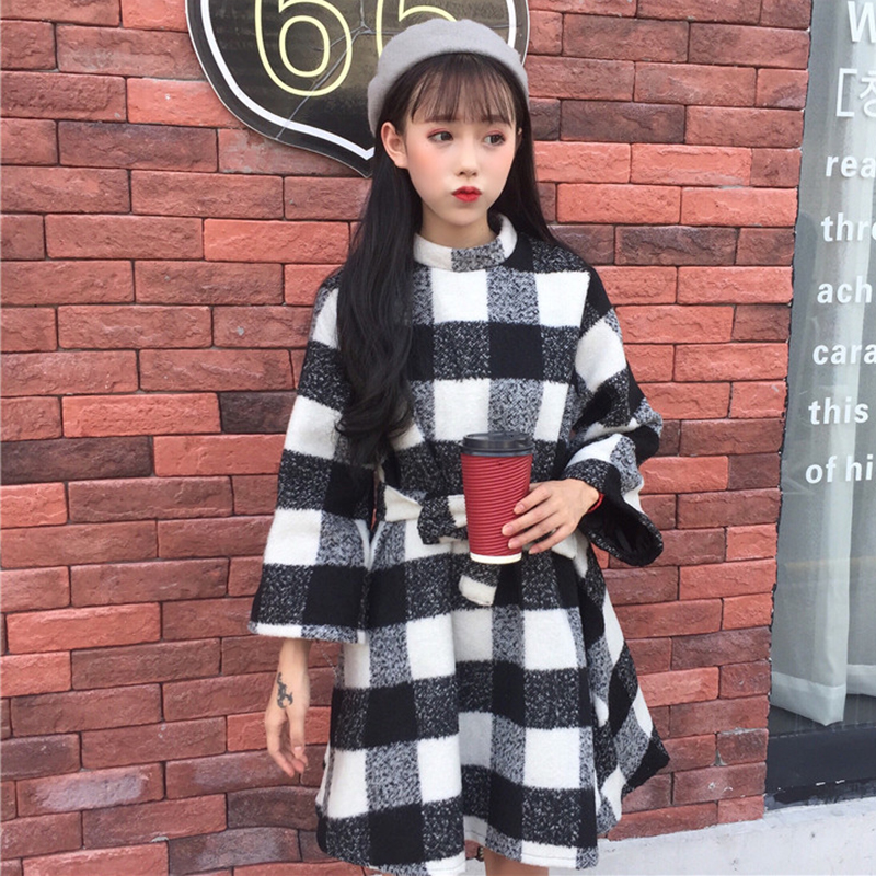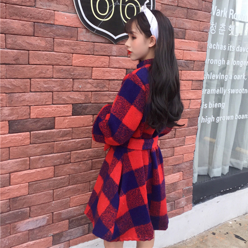 / 法式少女桔梗裙秋冬裝2018新款eeg風復古大格子收腰顯瘦A字連衣裙