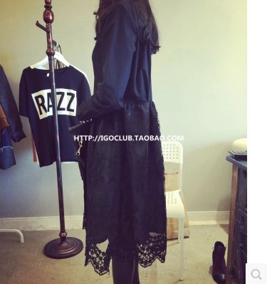 / 2016秋季新款韓版蕾絲拼接長袖連衣裙中長款寬松學生襯衫裙長裙子