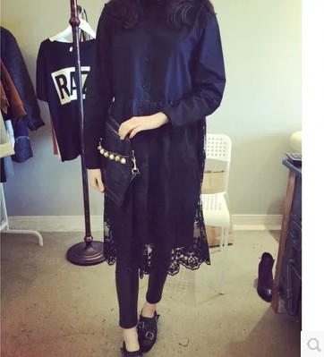 2016秋季新款韓版蕾絲拼接長袖連衣裙中長款寬松學生襯衫裙長裙子