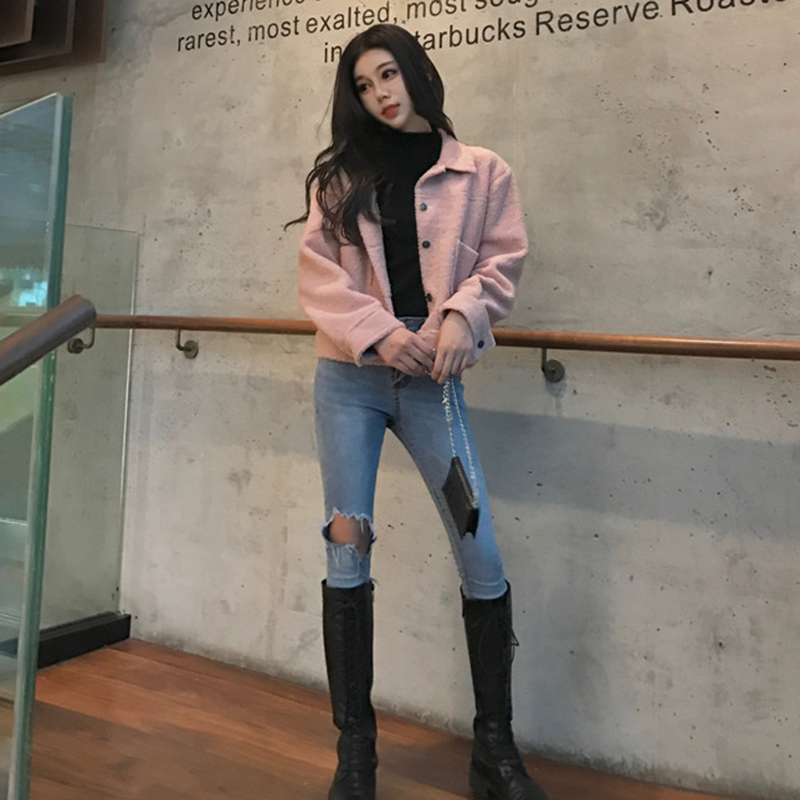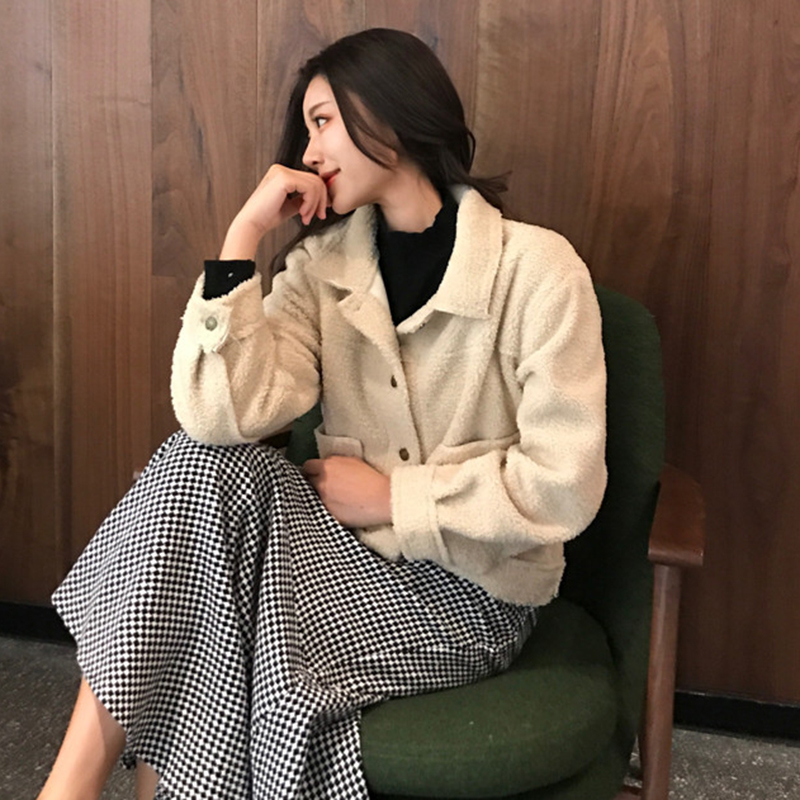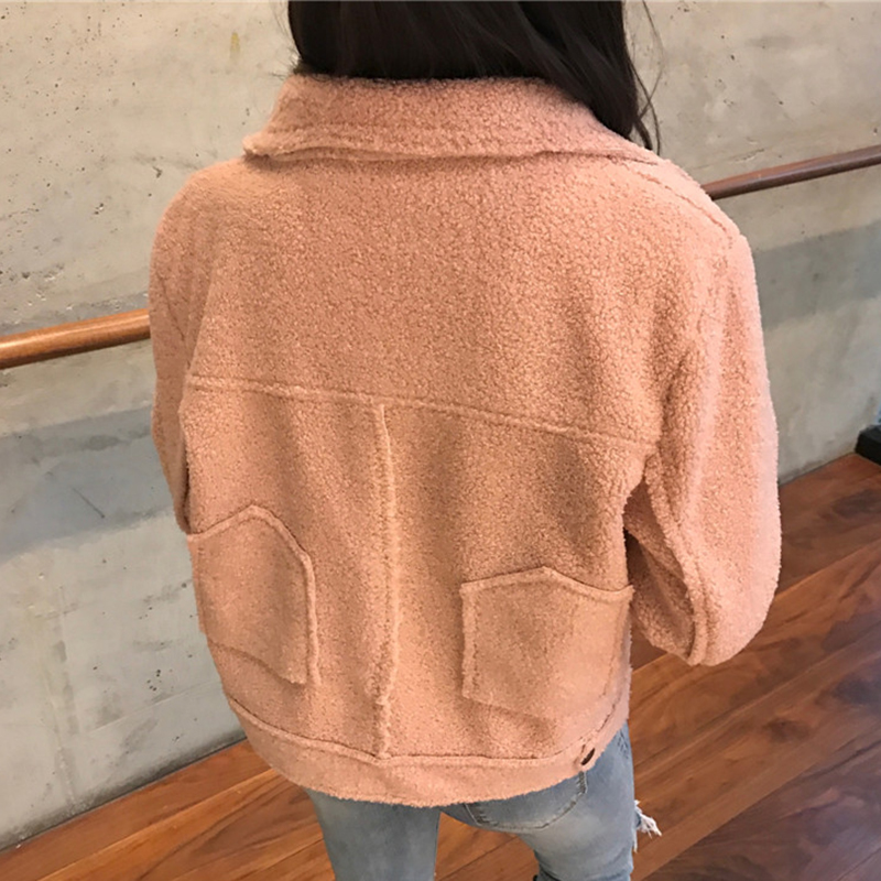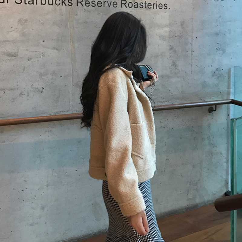 chic風仿羊羔毛開衫女秋冬裝2018新款韓版時尚寬松短款棉服外套潮