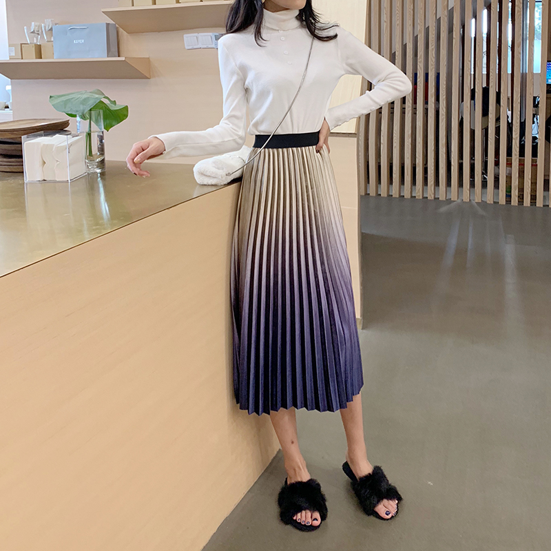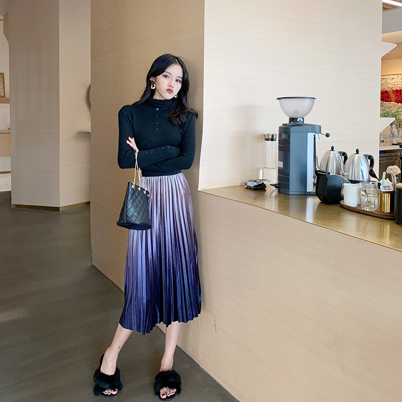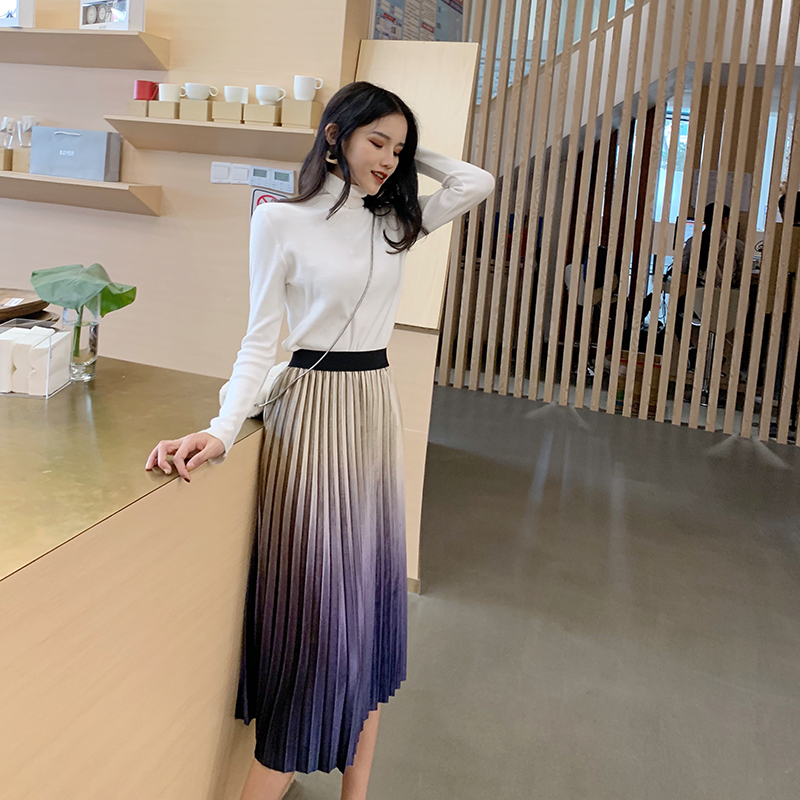 / chic小香風氣質新款修身百搭高領打底衫時尚套裝百褶半身裙兩件套