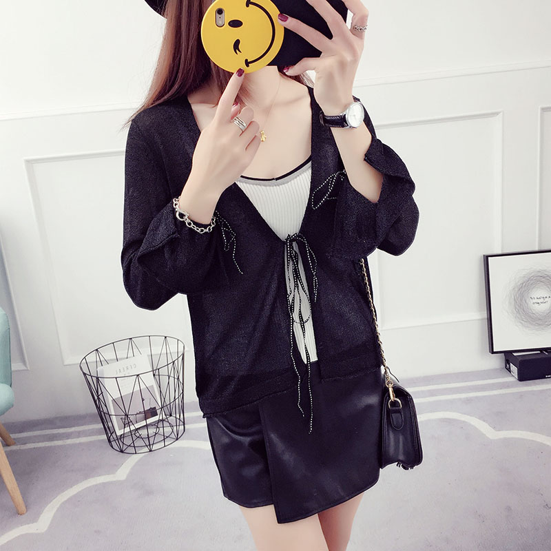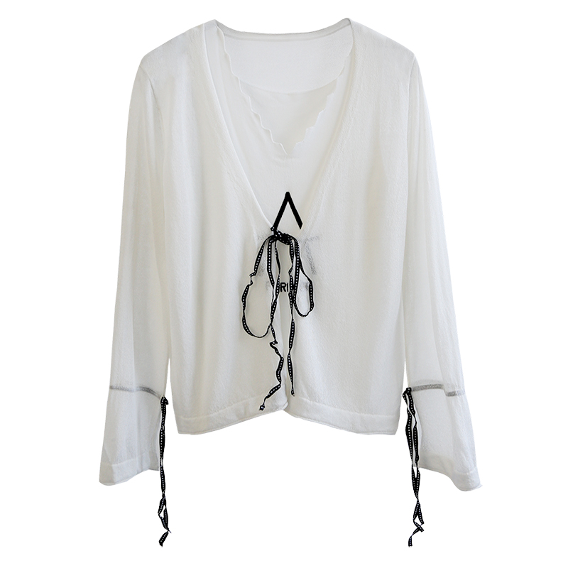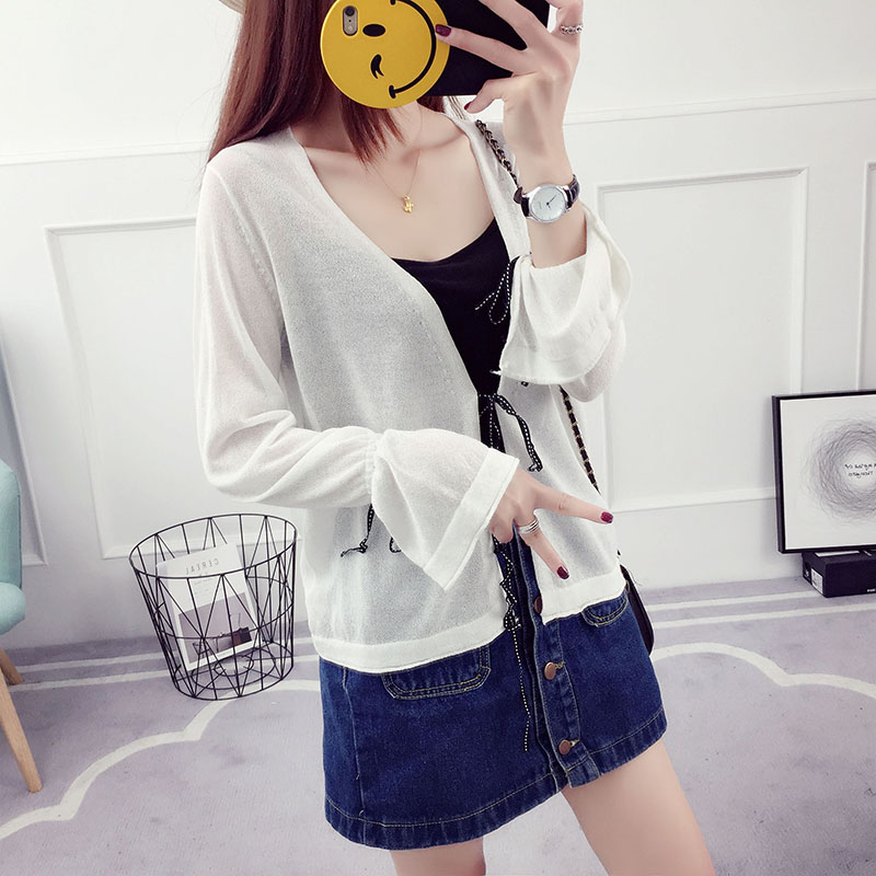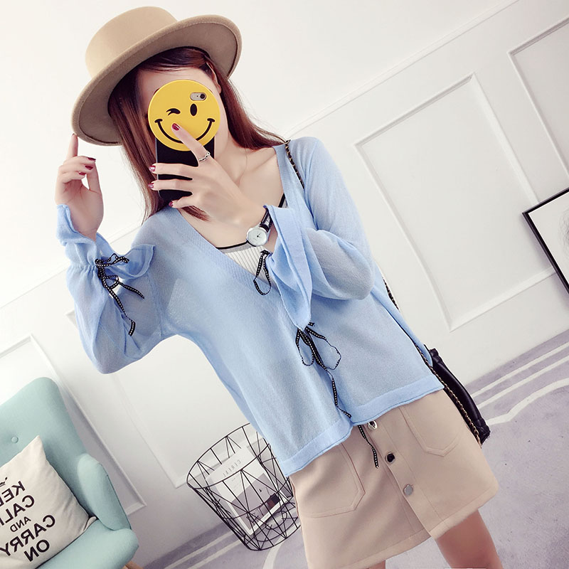 / 喇叭袖針織衫外套毛衣外搭開衫薄寬松短款女夏季冰絲防曬衣空調衫