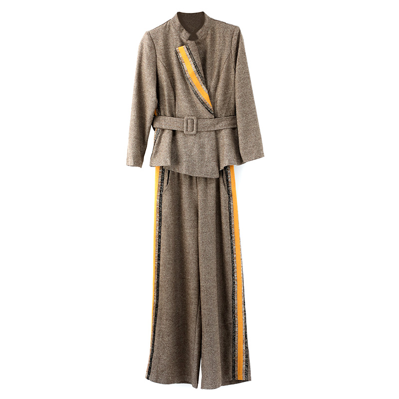 / 歐洲站2018秋冬裝新款收腰時尚休閑長袖外套闊腿褲套裝洋氣兩件套