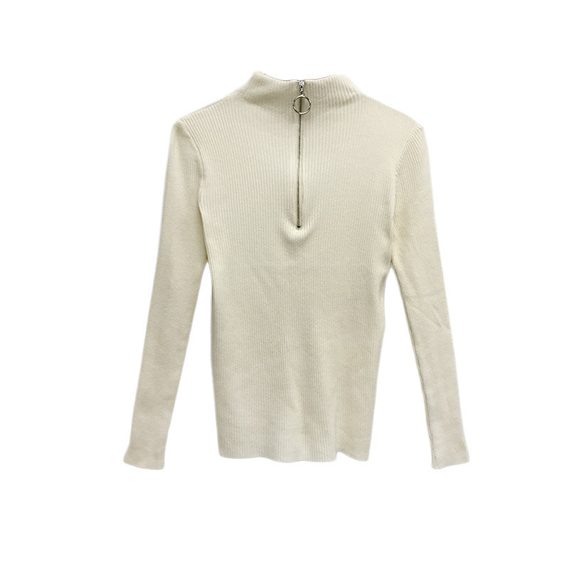 韓版chic早秋毛衣慵懶風氣質半高領圓環拉鏈修身長袖打底針織衫潮