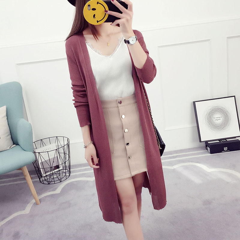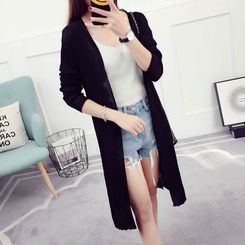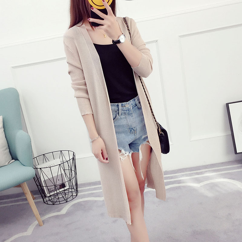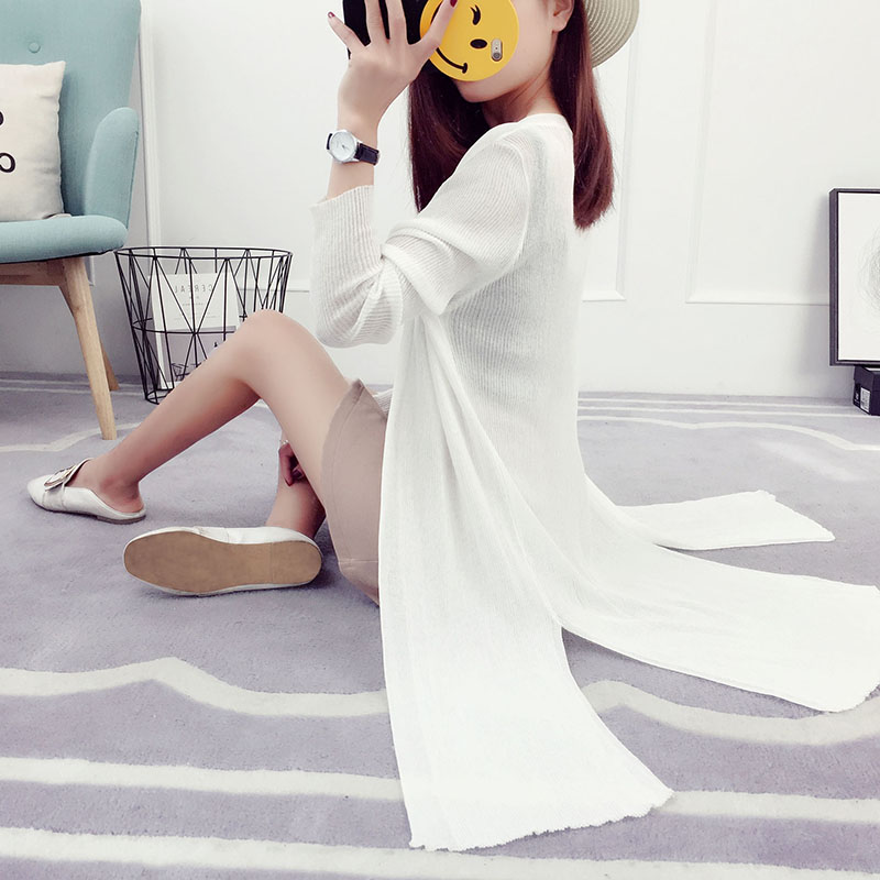 / 針織衫開衫薄款夏季外搭女新款中長款韓版空調衫長袖冰絲外套