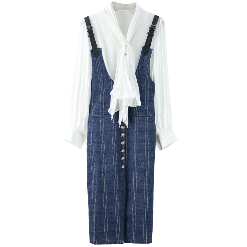 / 牛仔連衣裙女秋2018新款減齡顯瘦洋氣長袖襯衫背帶套裝裙兩件套潮