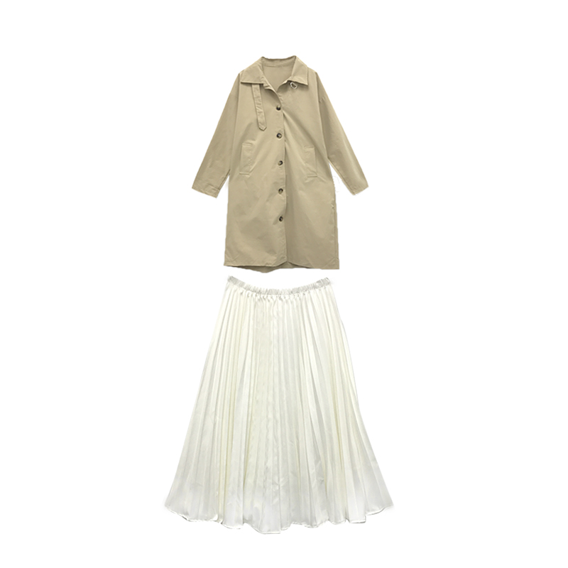 秋裝女2018新款套裝時尚兩件套中長款港風復古外套風衣+百褶裙潮