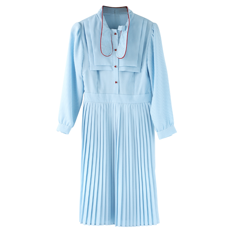 S秀條紋淑女襯衫連衣裙夏季2018新款氣質中長裙火收腰顯瘦裙子