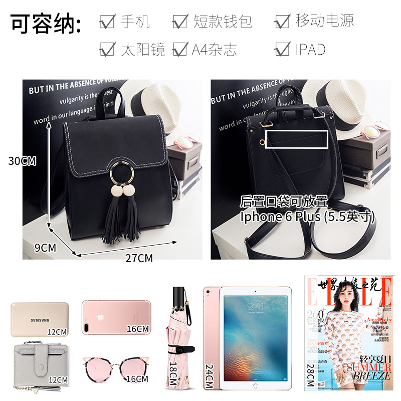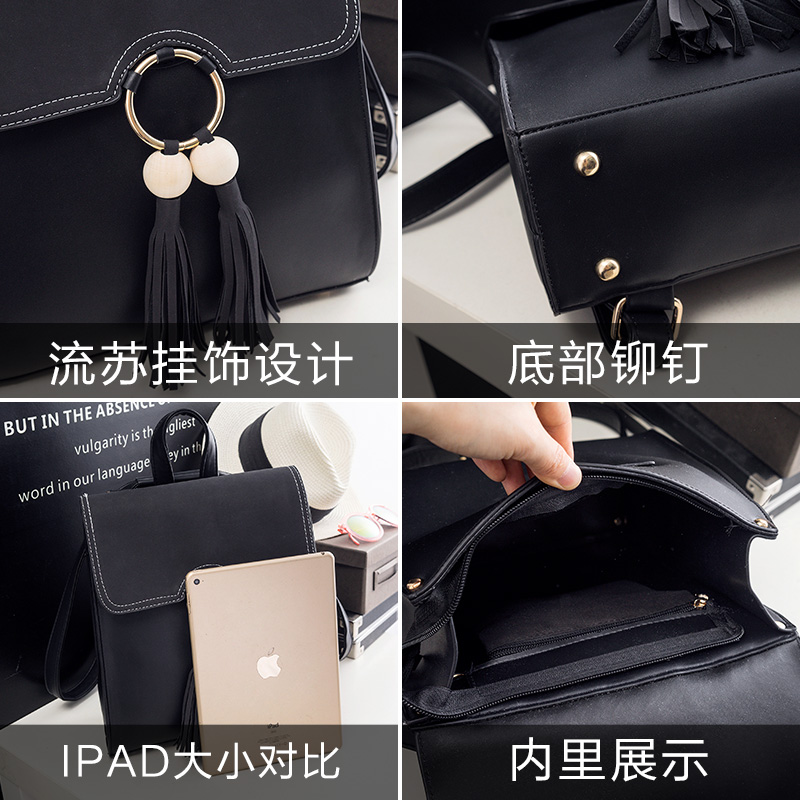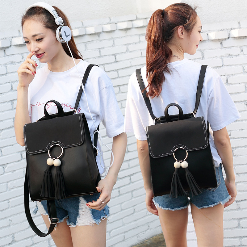 雙肩包女韓版pu歐美時尚個性百搭簡約流蘇女士包包新款潮背包
