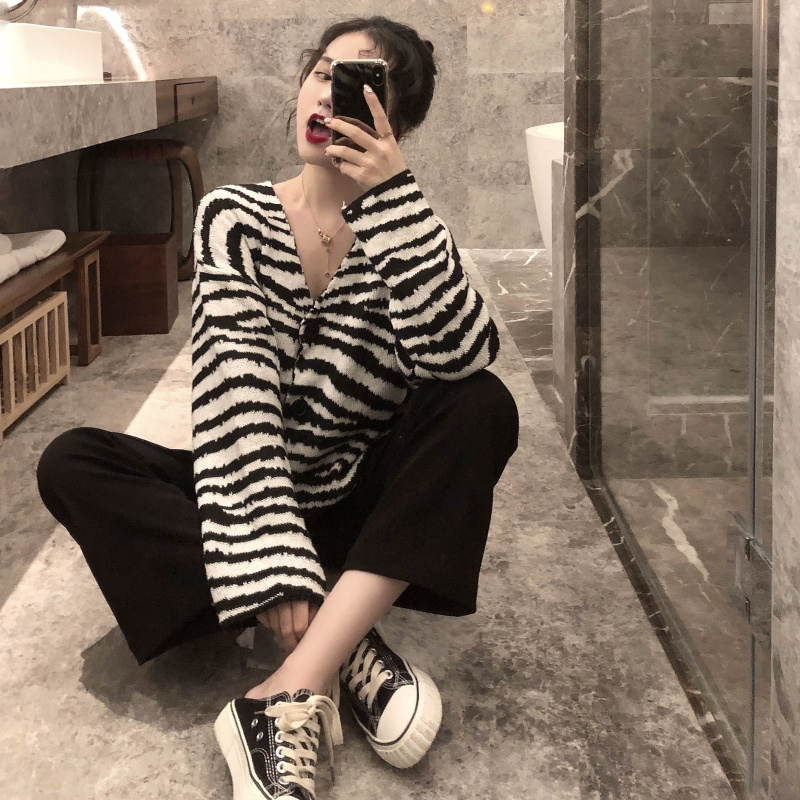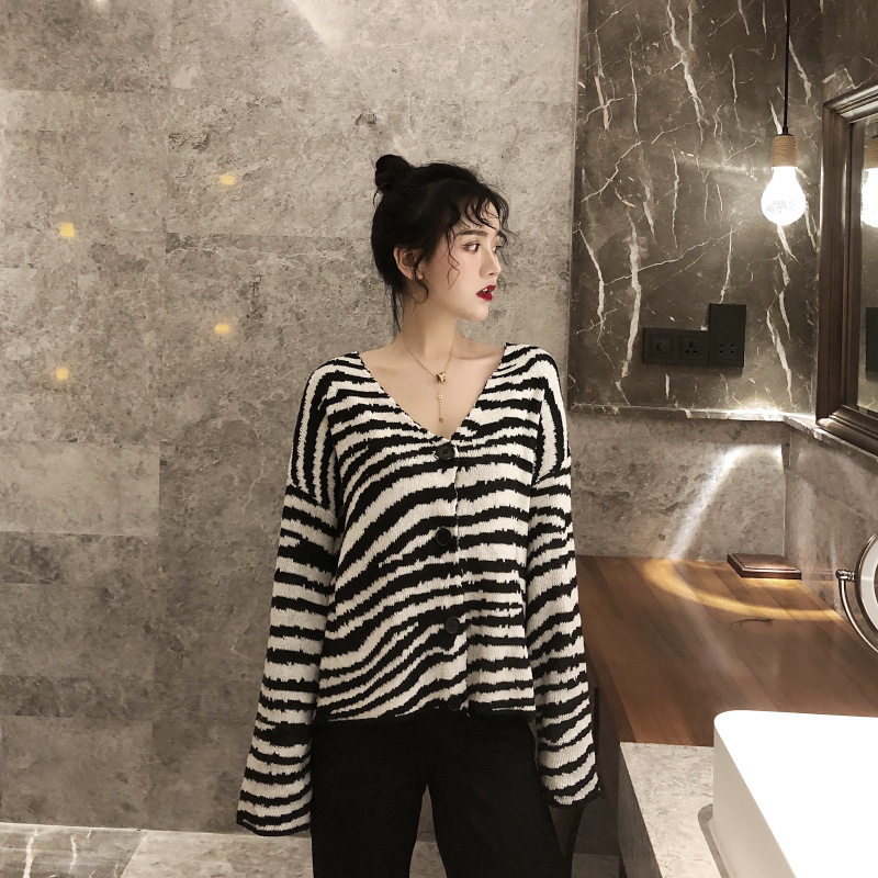 針織開衫毛衣外套女韓版2018新款百搭寬松V領長袖羊毛短款上衣潮