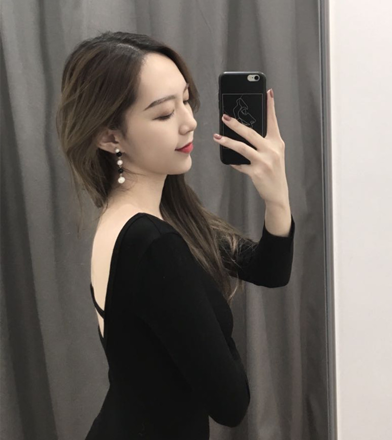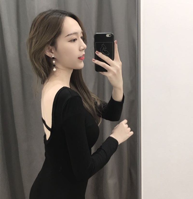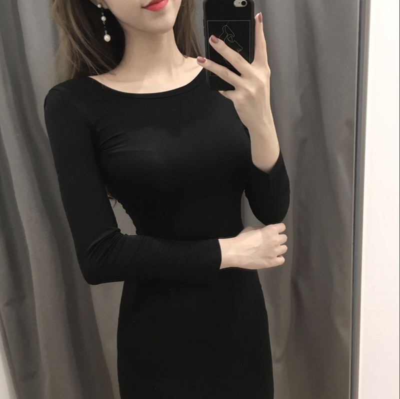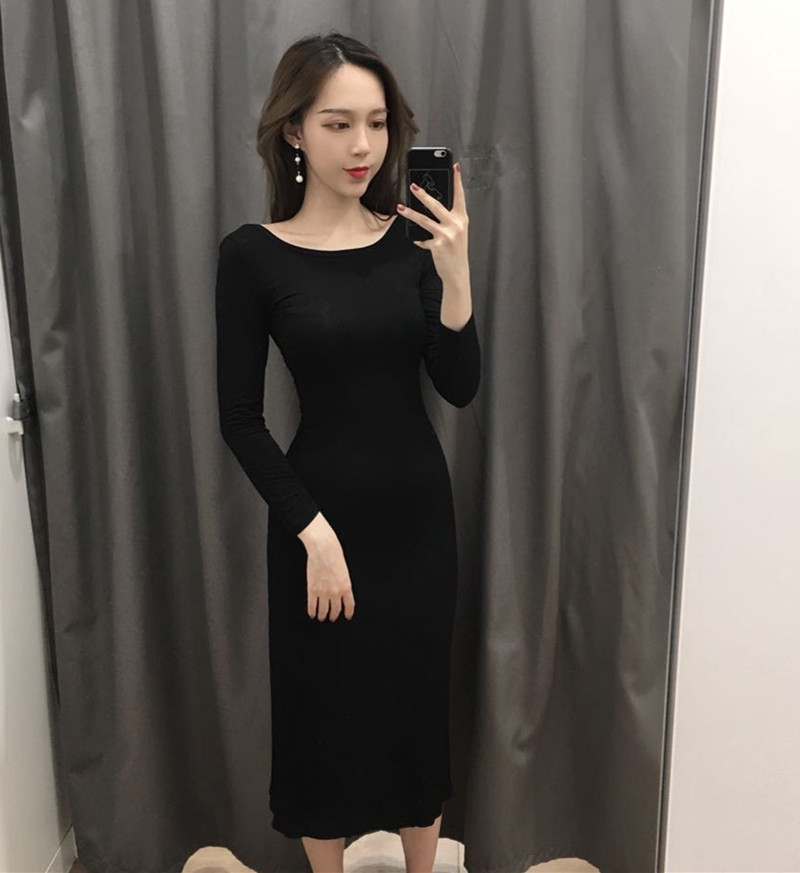 / 晚晚風新款大圓領顯瘦小心機百搭秋裝氣質修身設計感露背連衣裙女