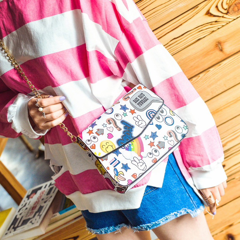 包包新款潮撞色印花小包韓版個性鏈條小方包百搭單肩斜挎女包