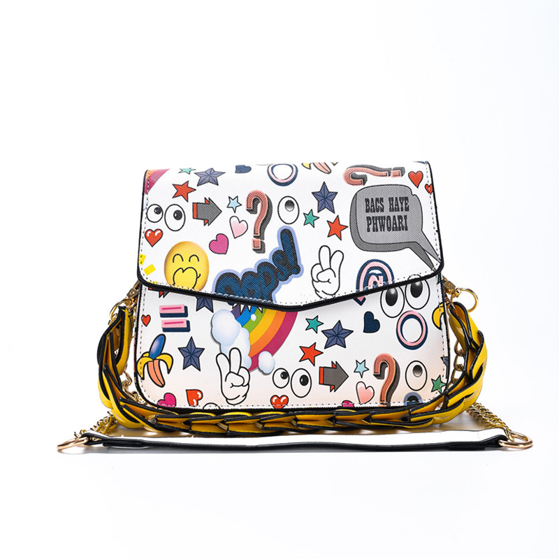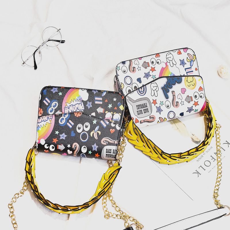 / 包包新款潮撞色印花小包韓版個性鏈條小方包百搭單肩斜挎女包