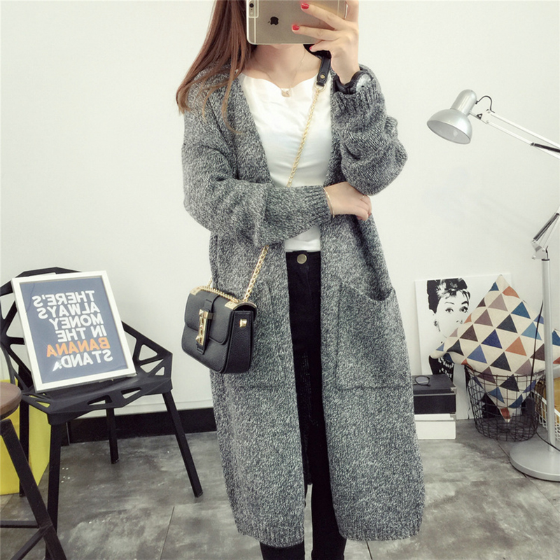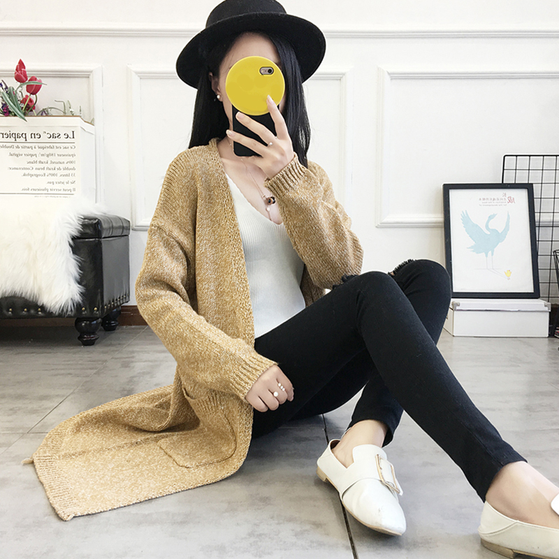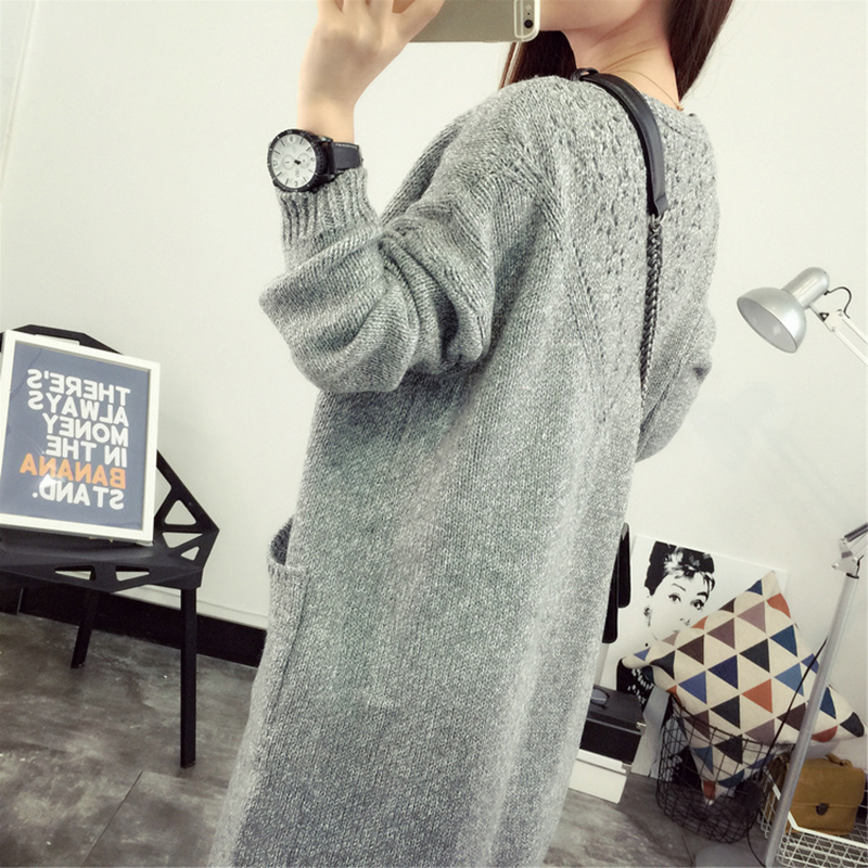中長款后背鏤空毛衣外套女秋冬裝2018新款韓版寬松長袖針織開衫潮