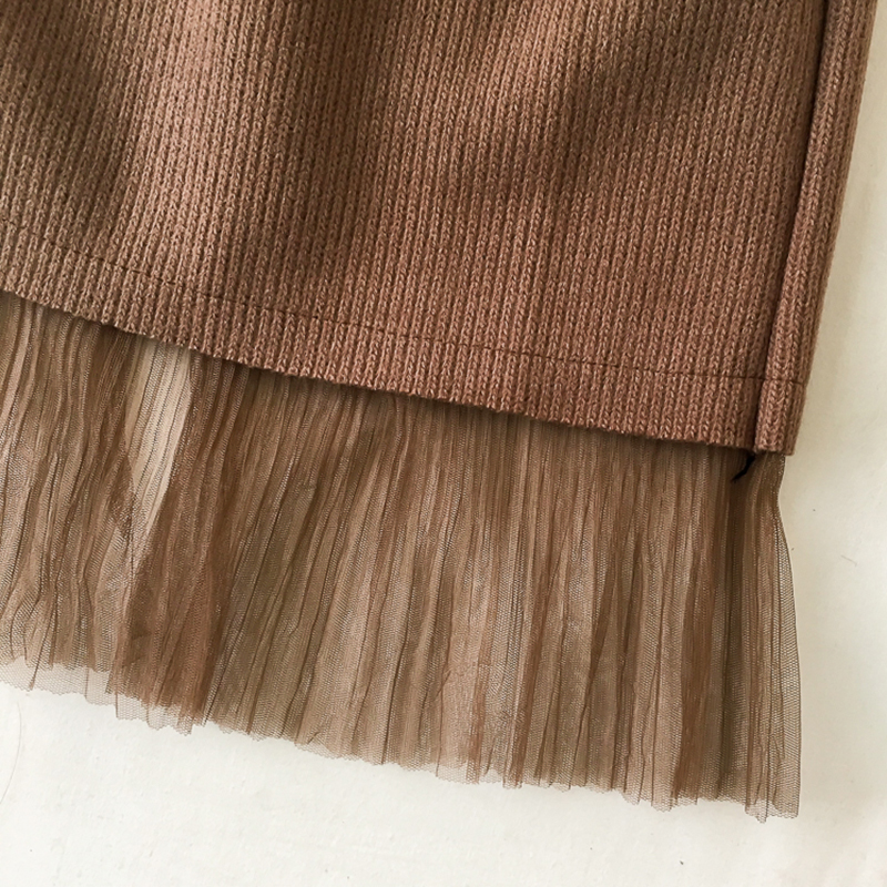/ 高腰顯瘦網紗拼接呢子半身裙女秋冬裝新款韓版chic黑色A字中長裙