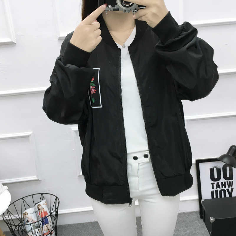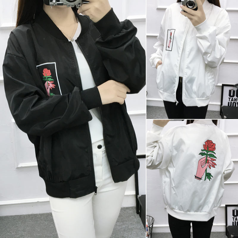 2017春秋韓版原宿風花朵刺繡棒球服夾克情侶款bf寬松長袖外套男女